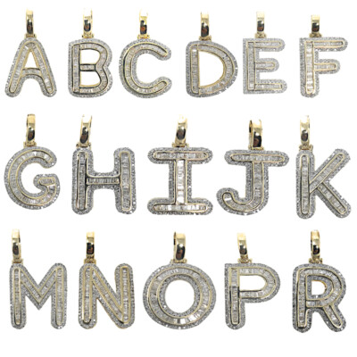 Men S Ladies 10k Real Yellow Gold Genuine Diamond Baguette Initial Letter Charm Ebay